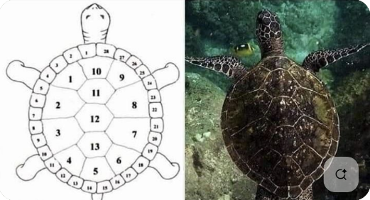 - Turtle Shell: Turtle back with 13 central and 28 component shell structure